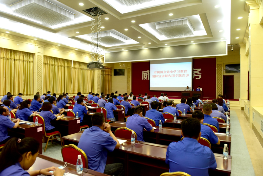 为进一步强化政治理论武装,高质量推进党史学习教育,根据党史学习教育工作总体部署和市国资委宣讲工作统一安排,6月25日上午,市水务集团组织召开党史学习教育宣讲报告会,邀请市属国企党史学习教育巡回宣讲报告团成员开展专题宣讲。集团公司领导班子成员、各基层党组织书记(副书记)、副厂级以上干部及党务工作者等,共计100余人参加报告会。