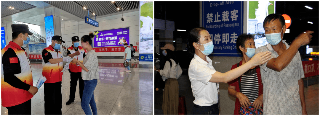 交通场站公司志愿者们先后开展“送口罩 传递健康”“助力暑运 秩序维护”等志愿服务活动,对进站未佩戴口罩的旅客免费发放口罩并讲解文明健康防疫知识,在出站口开展测温验码,在人流、车流密集区域开展导乘指引、秩序维护等活动,努力做好公共防疫、保障健康出行、提高换乘效率。