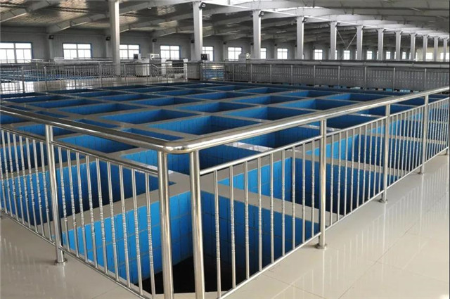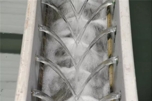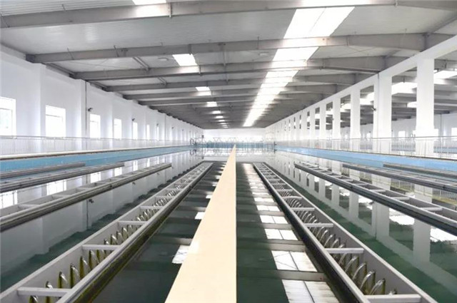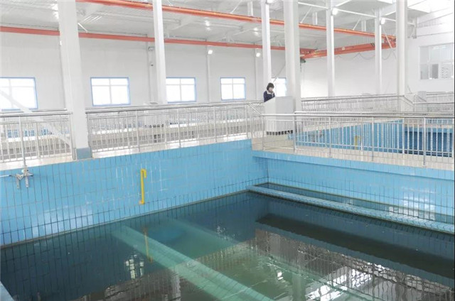 沉淀后的清水分流进入16个V型滤池,经石英砂等滤料的层层过滤,滤后水的浊度会被降到0.5 NTU,作为常规处理工艺,其浊度等指标已优于国家允许标准,此时的水经过消毒处理后已经可以向城市供应。
