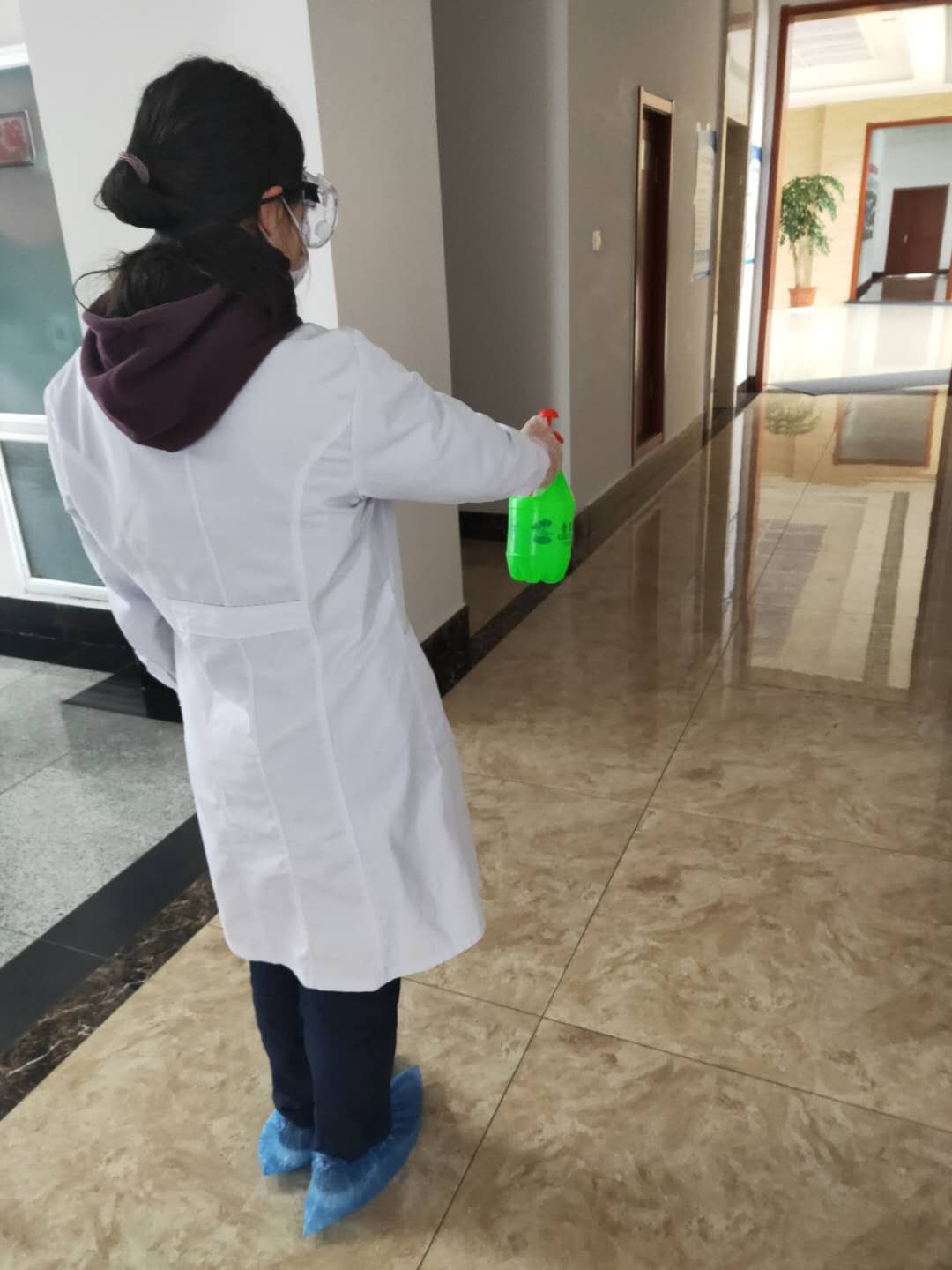 防疫方案下发后,在经区污水厂综合大楼内的行政人员还未正式上班,但大楼的消毒工作不容忽视,综合楼不仅仅是行政办公大楼,一楼有化验室和职工食堂,二楼有经区污水厂的中控室,人员流动频繁,要做好日常消毒工作必须做到严格细致,为防止传染,疫情期间化验人员要求当班不能全员上岗,且为达标排放,每日水质化验加大了对粪大肠菌群的化验力度,在这种人员少工作量增加的情况下,化验人员主动挑起对综合楼的每日消毒记录工作,他们说:“消毒酒精我们管理、酒精配兑分发我们来做,综合楼的日常消毒工作也由我们做”。
