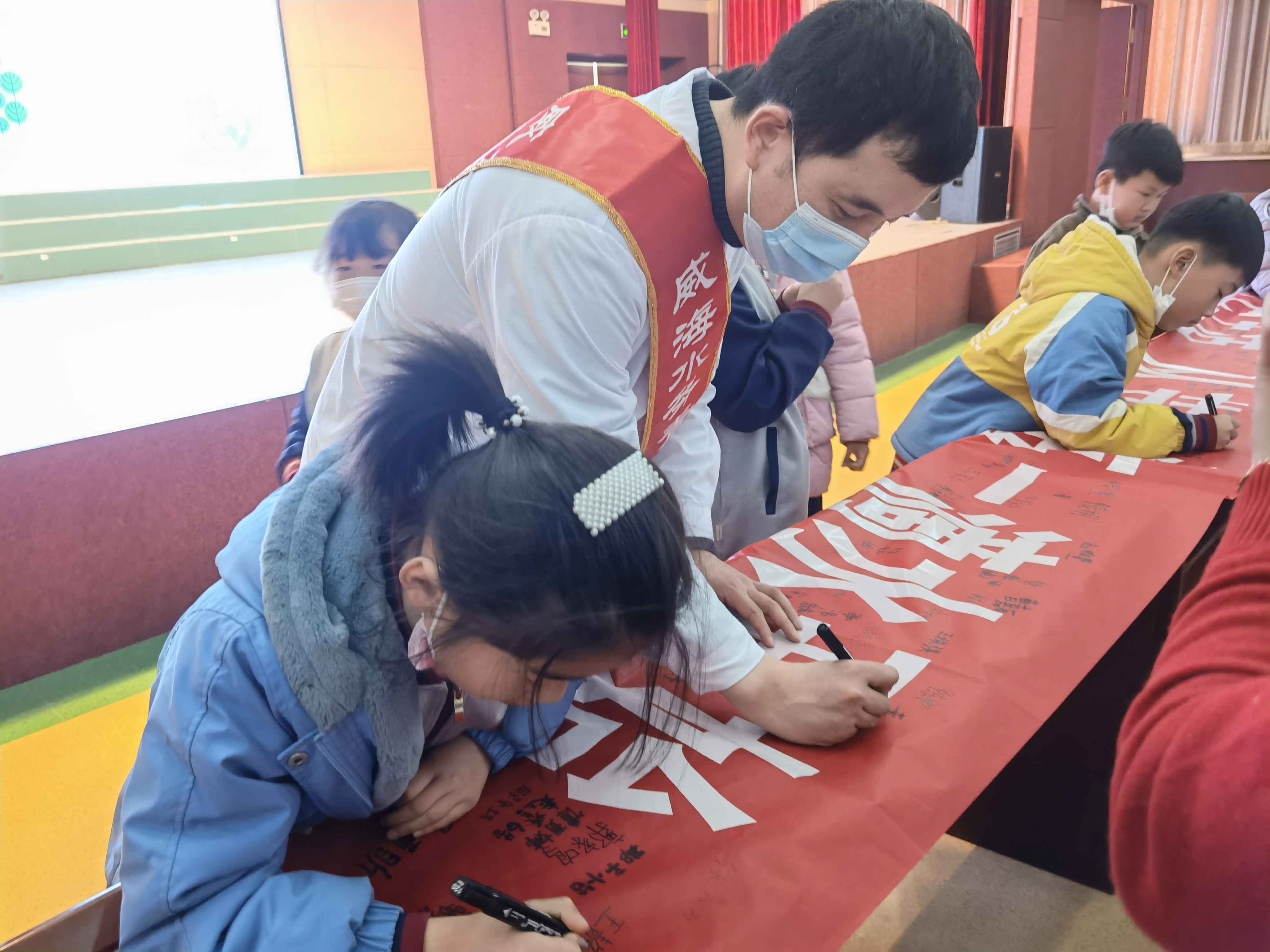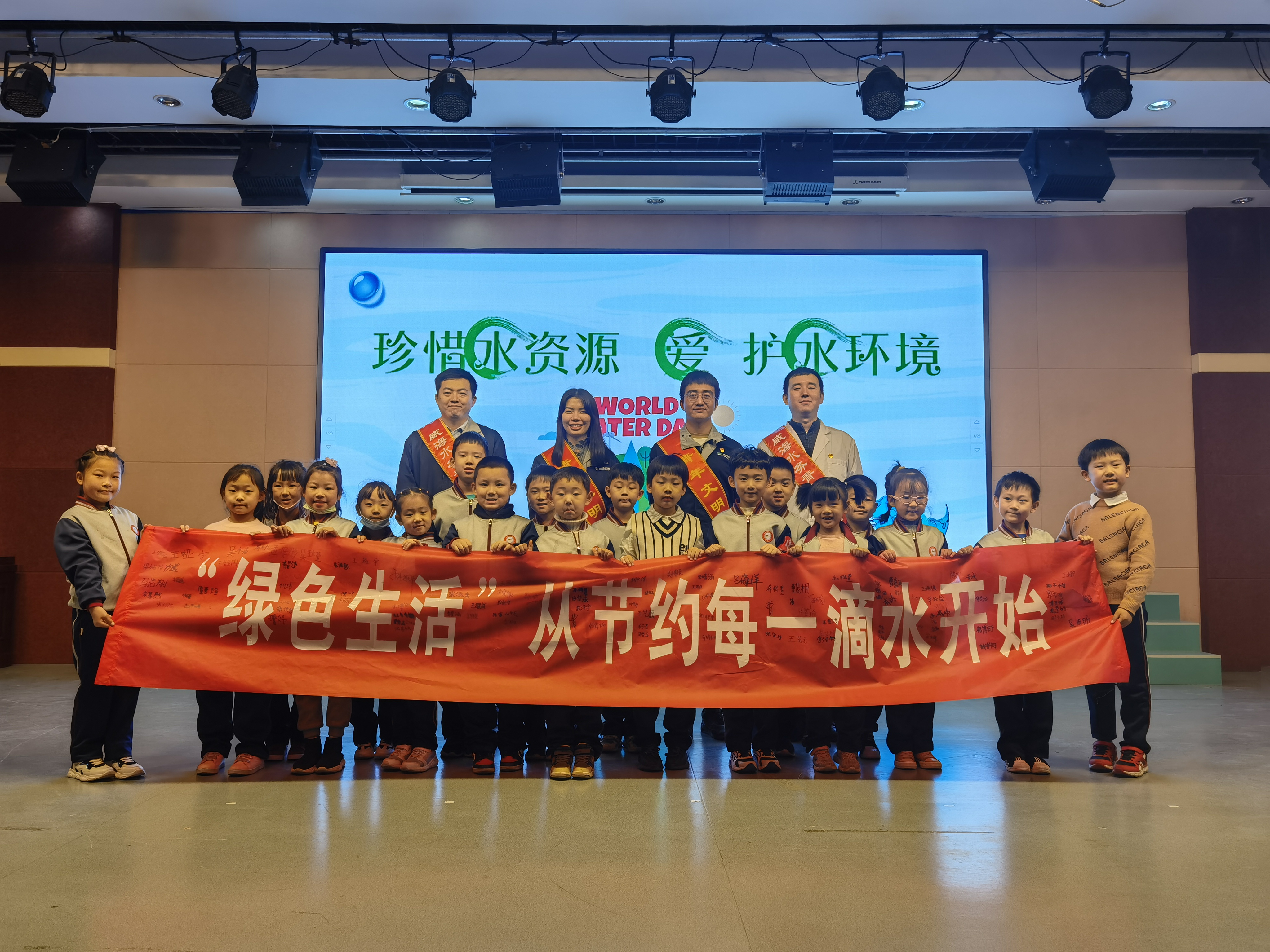 参与活动的老师、学生们纷纷在节水倡议横幅上签下自己的名字,表达自己对活动的支持。活动结束时,签名横幅上已经密密麻麻签满了师生的姓名,每个名字都是对爱护水资源的一份承诺。