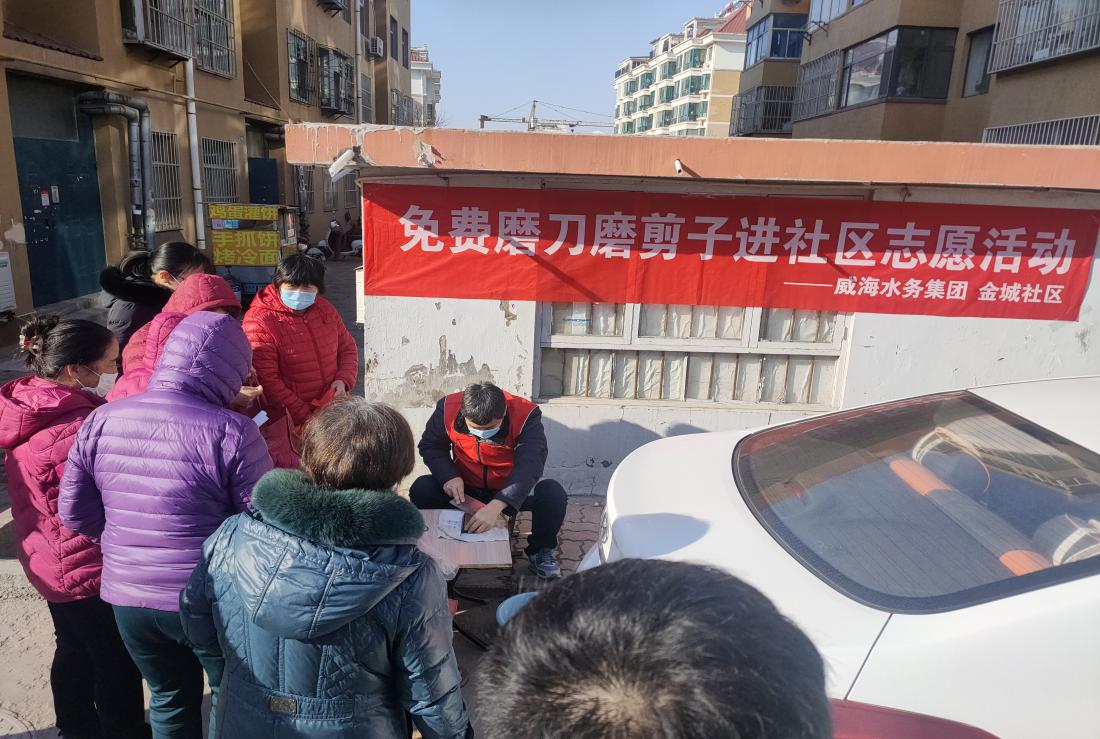 镜头四:崮山净水厂党支部发挥党员个人特长,走进社区开展免费磨刀、磨剪刀志愿服务。志愿者们娴熟的打磨技艺和热情周到的服务,得到居民们满意和认可。